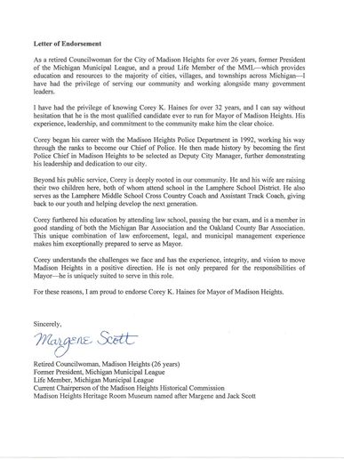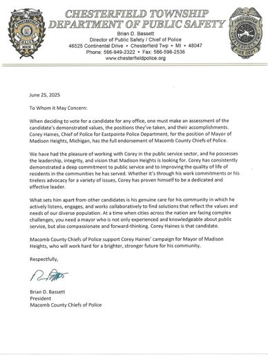 Elect Corey K. Haines for Mayor Madison Heights, Michigan